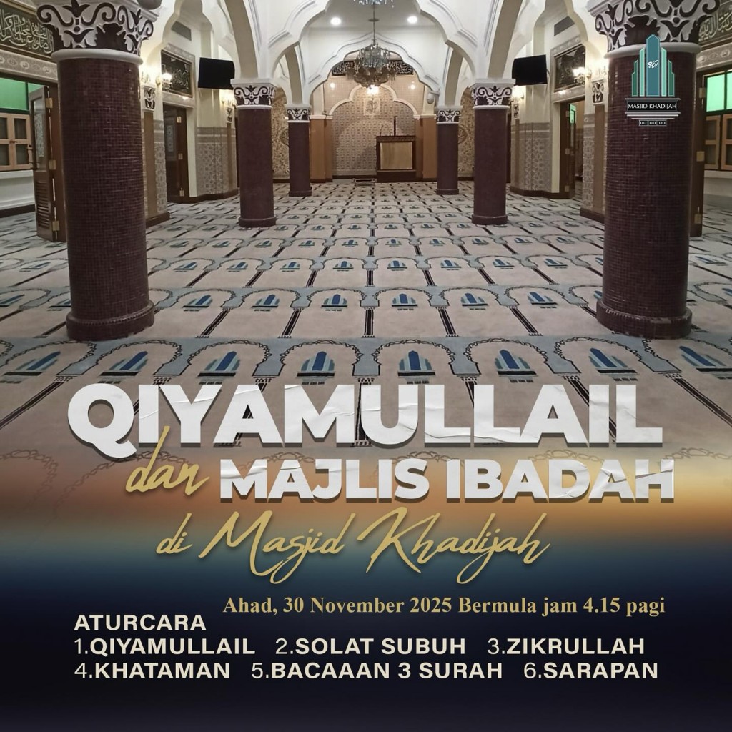 Join us for our monthly Qiyam at Masjid Khadijah this Sunday, 30 November 2025.
